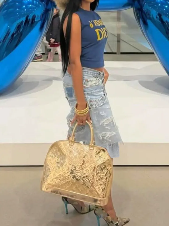 Asymmetrical Distressed Denim Capri Pants