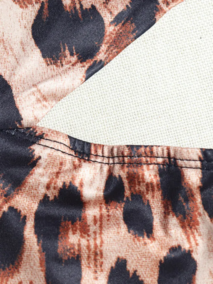 - Design: Halter tie-neck, sleeveless, leopard print