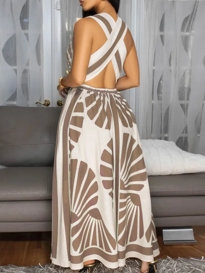 Boho Print Cross Back Maxi Dress