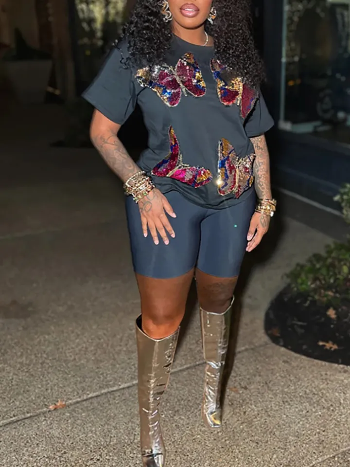 Butterfly Sequin Shorts Set