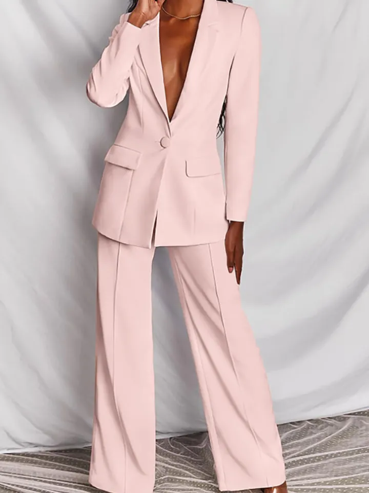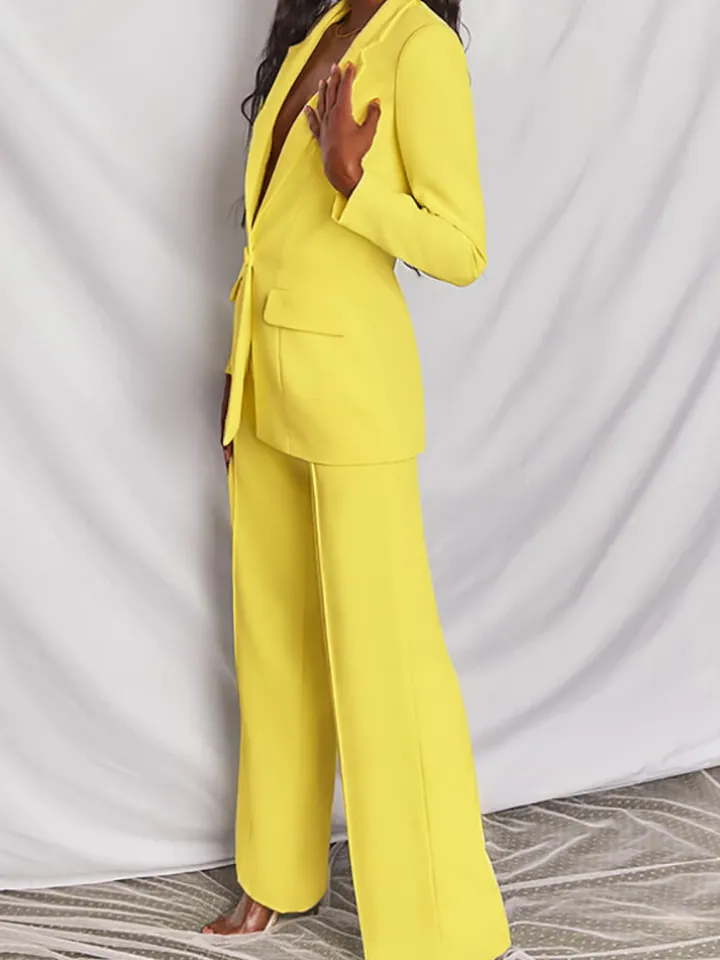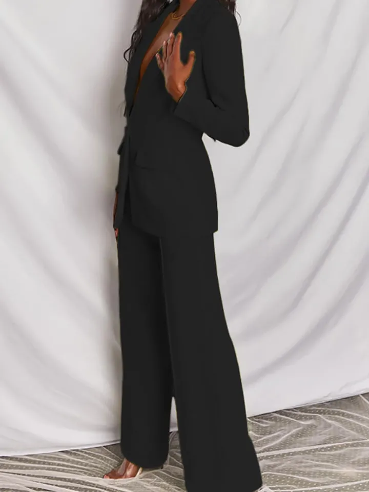 Casual Blazer Long Pants Two Piece Outfits