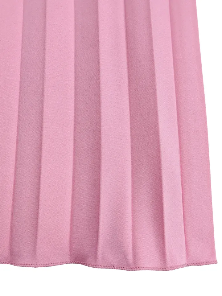- Bottom: High-waist pleated wide-leg pants