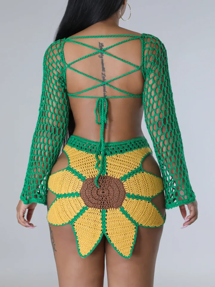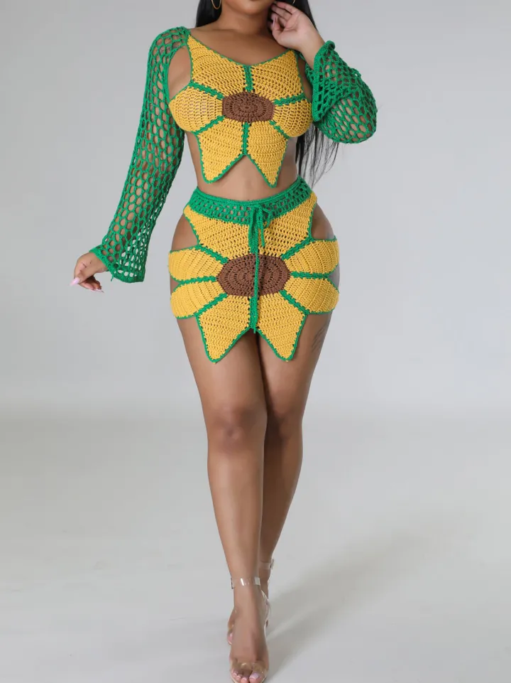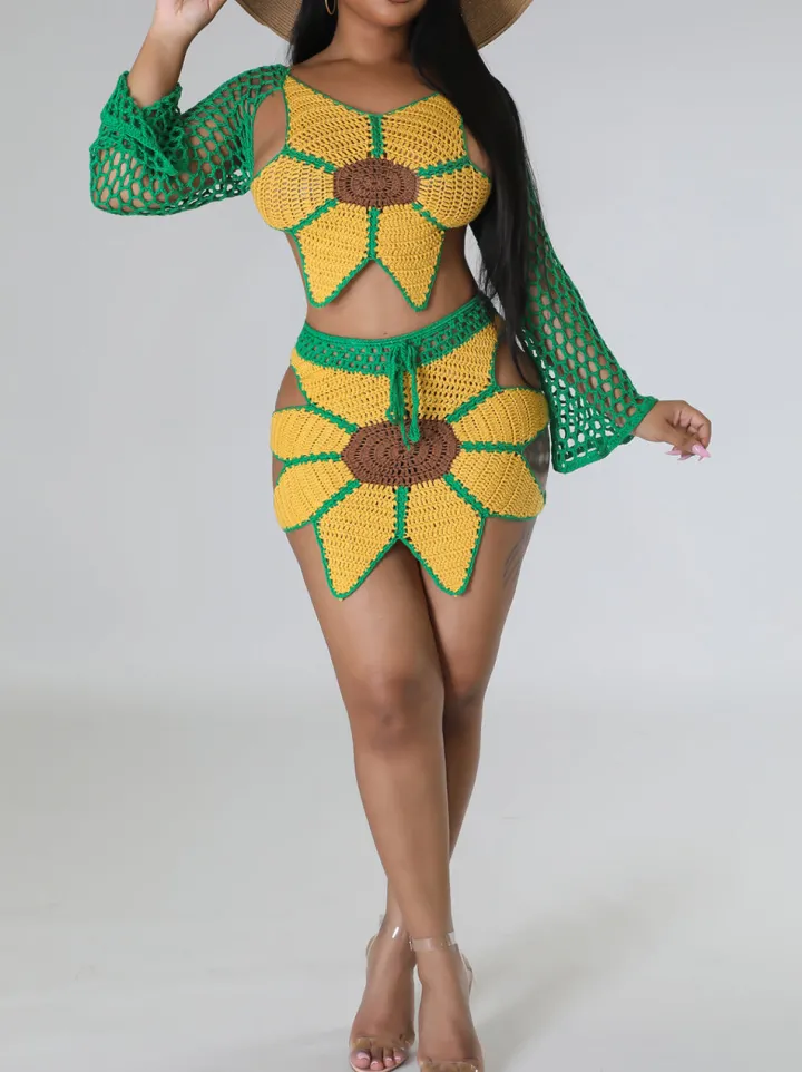 Crochet Sunflower Beach Skirt Set