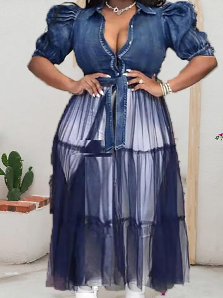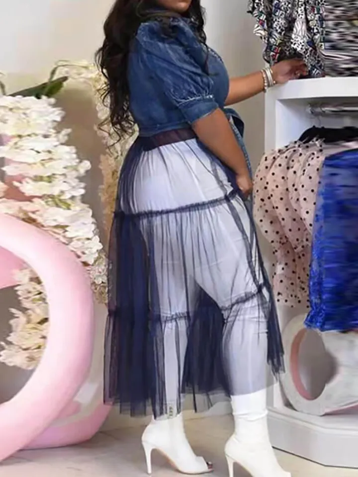 Be the first to review “Denim Mesh Patchwork Short Sleeve Top” Cancel reply