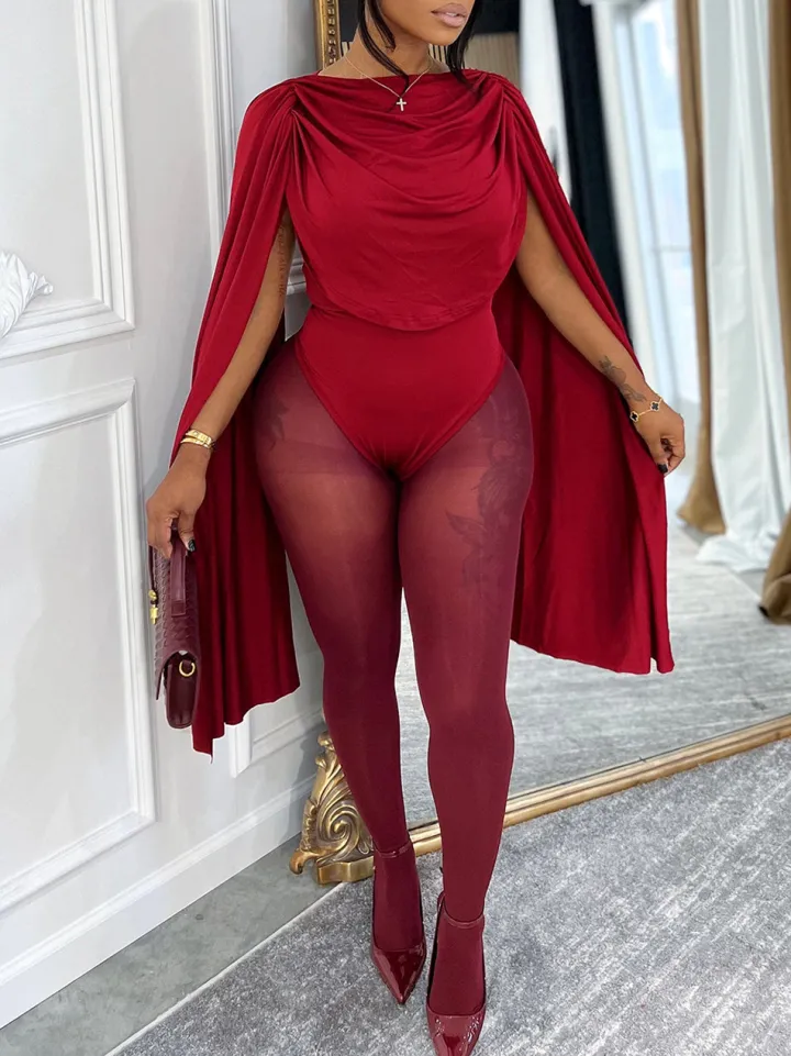 Be the first to review “Draped Round Neck Cape Sleeve Romper” Cancel reply