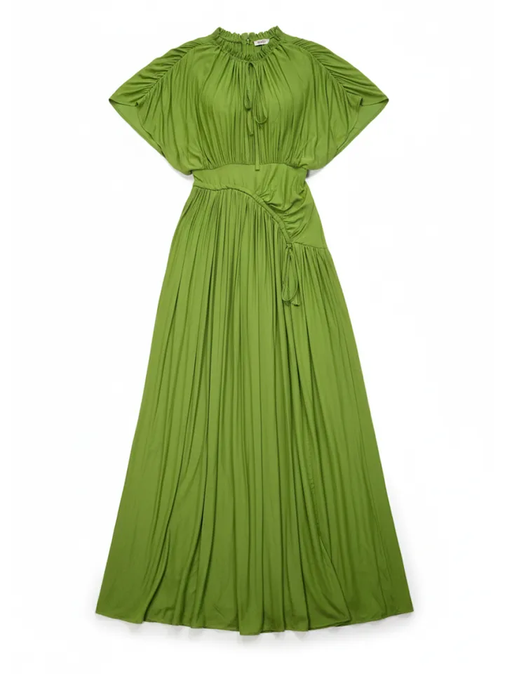 Elegant Pleated Drawstring Waist Maxi Dress