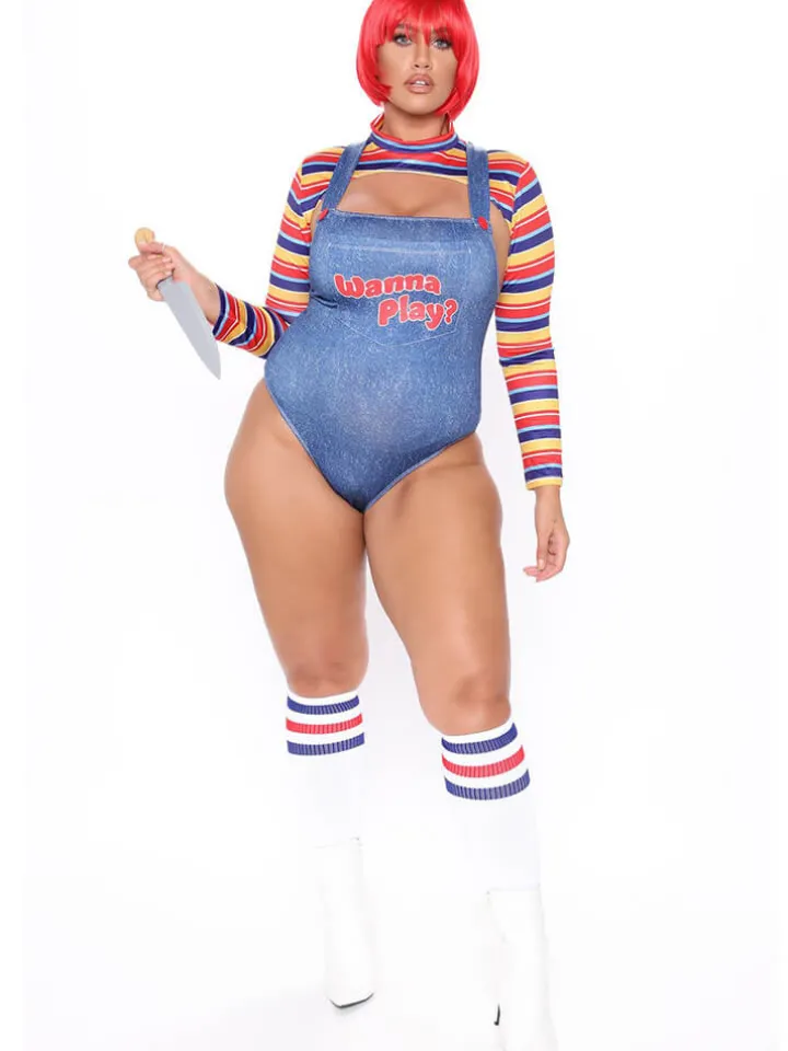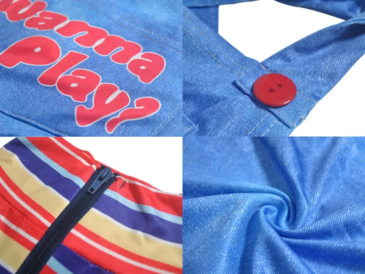 Features: Halloween Sweatshirt, Long Sleeve, Striped Print, Letter Print, Cut Out, Crop Top, Backless, Criss-Cross, Clown Costume, With Overalls.