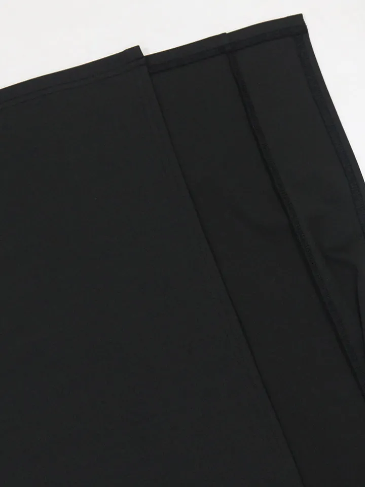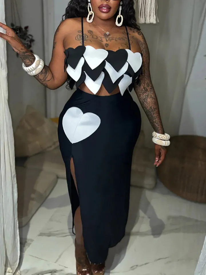 - Skirt: High slit, figure-hugging silhouette, elastic waist
