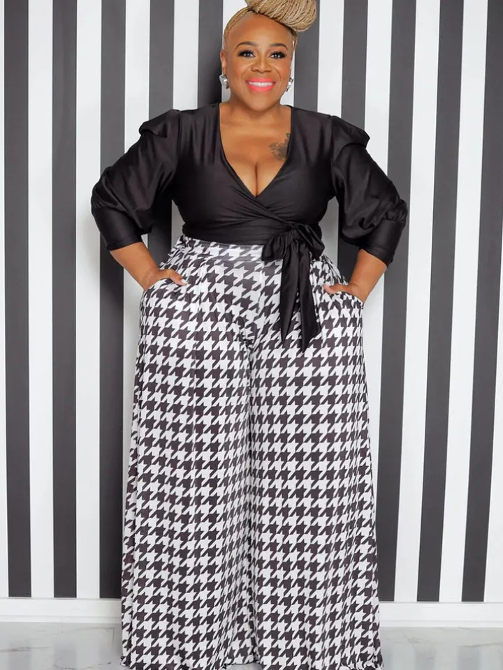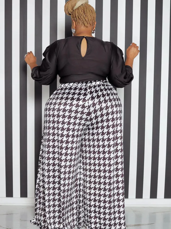 Be the first to review “High Waist Houndstooth Print Floor Length Wide Leg Bottoms” Cancel reply