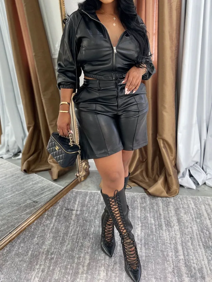Be the first to review “Hooded PU Leather Jacket Shorts Set” Cancel reply