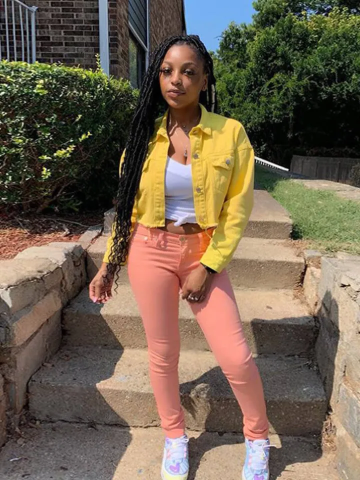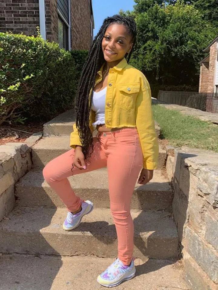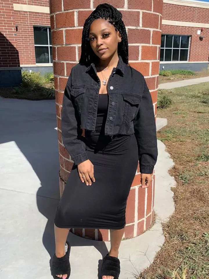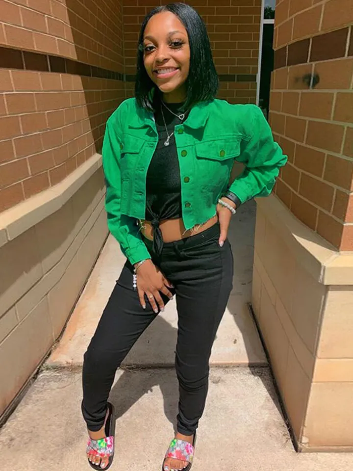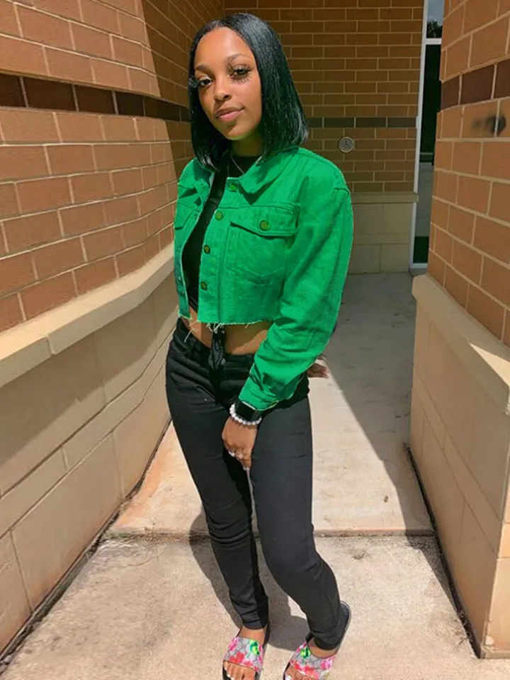 Features: Women cropped oversized denim jean jacket coat, lapel collar, single-breasted closure, two chest pockets, long sleeve, casual fit, cute solid distressed denim jacket.