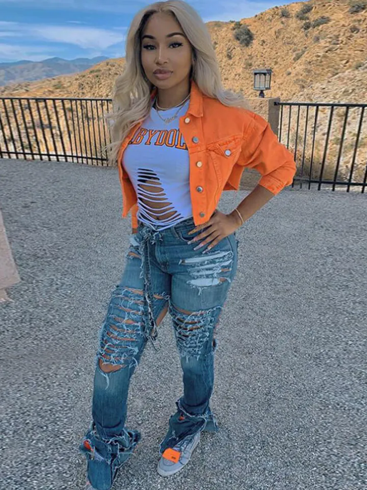 Be the first to review “Long Sleeve Button Down Ripped Denim Jacket” Cancel reply