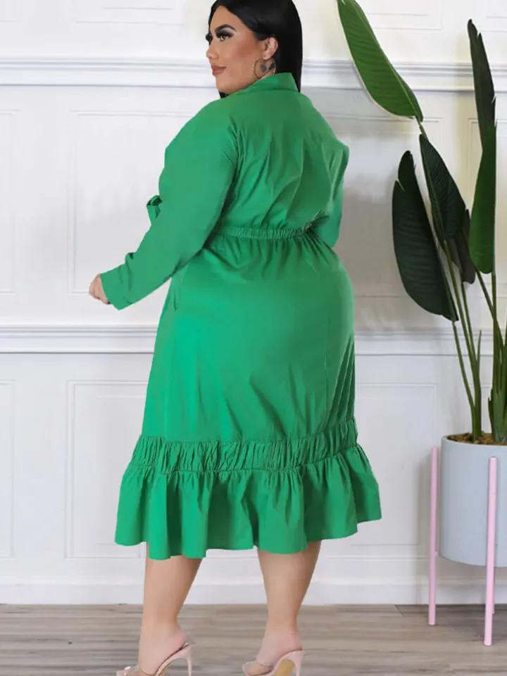 Feature: Long sleeve, v-neck, solid color, ruffle, lace up, bodycon, midi dress. Unique style makes you fashionable.