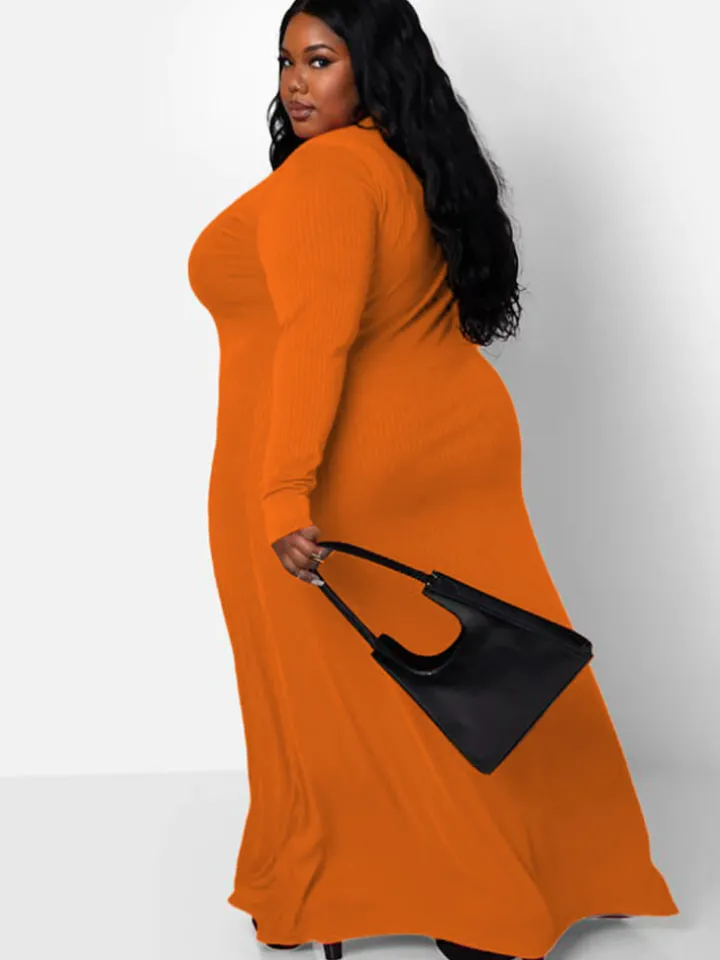 Long Sleeve Ribbed Solid Bodycon Maxi Dress