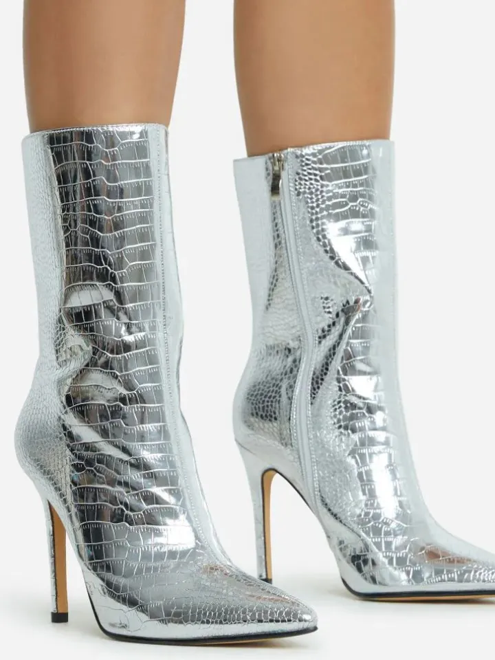 Metallic Pointed Toe Stiletto Ankle Boots