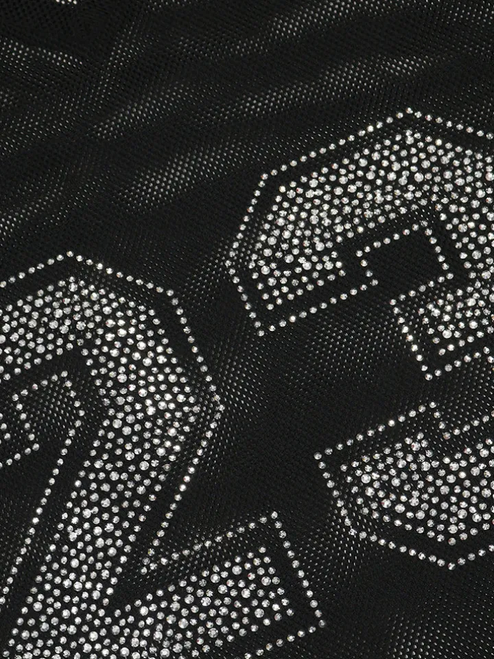 Number Graphic Rhinestone Mesh T-Shirt Dress