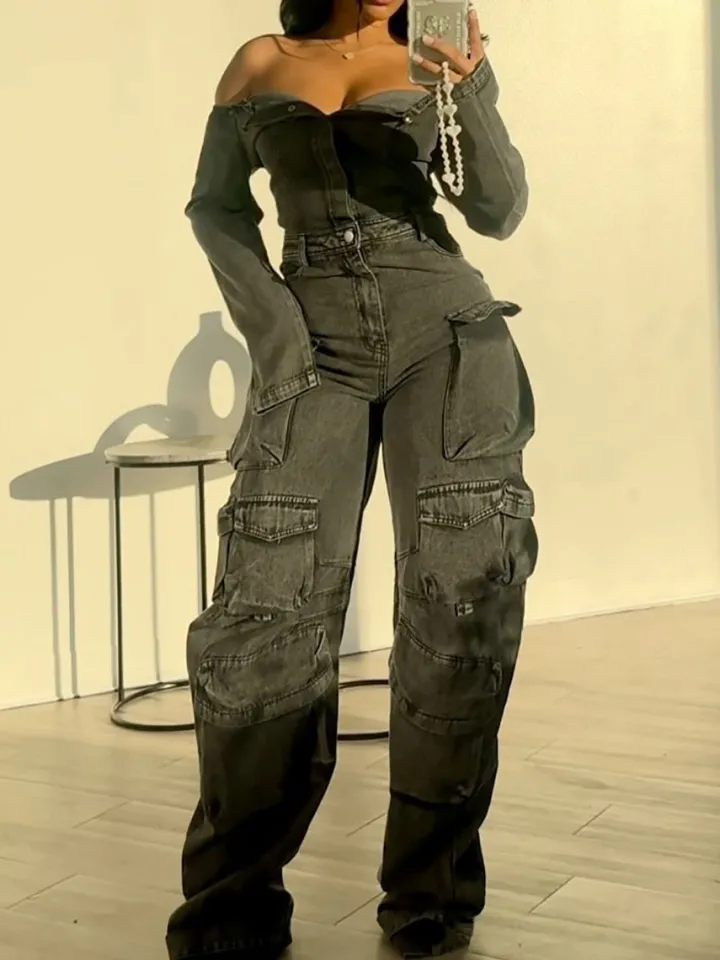 Be the first to review “Off-Shoulder Pockets Denim Jumpsuit” Cancel reply