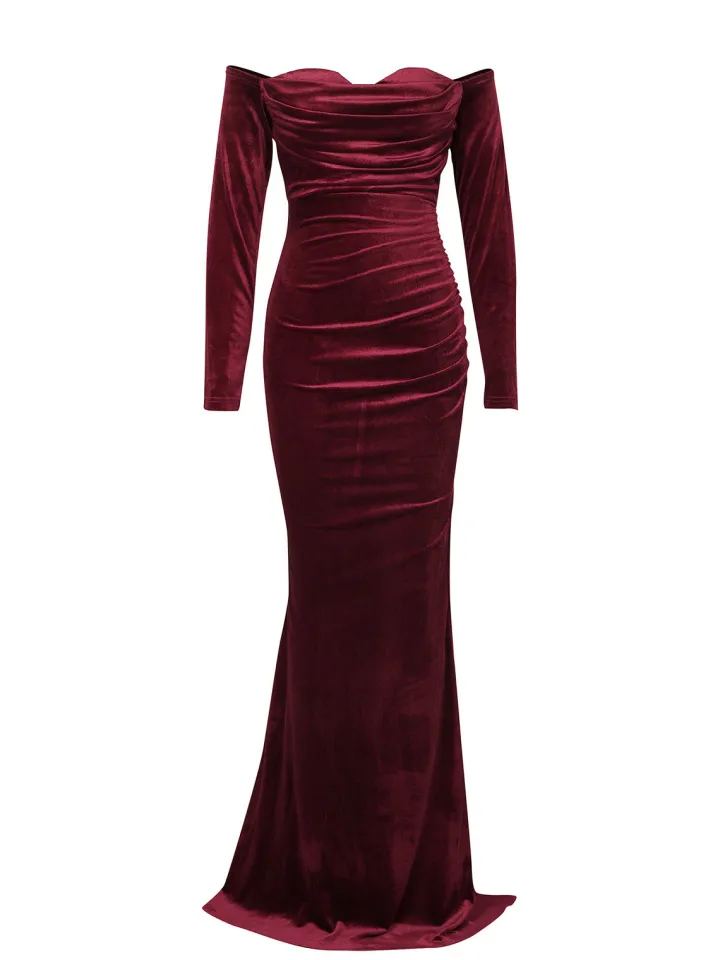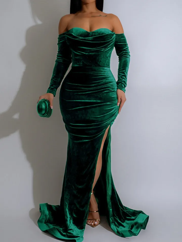 Be the first to review “Off Shoulder Velvet Split Maxi Dress” Cancel reply
