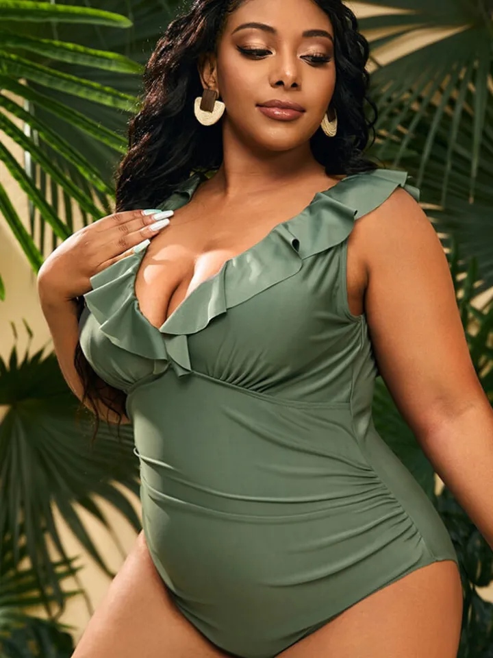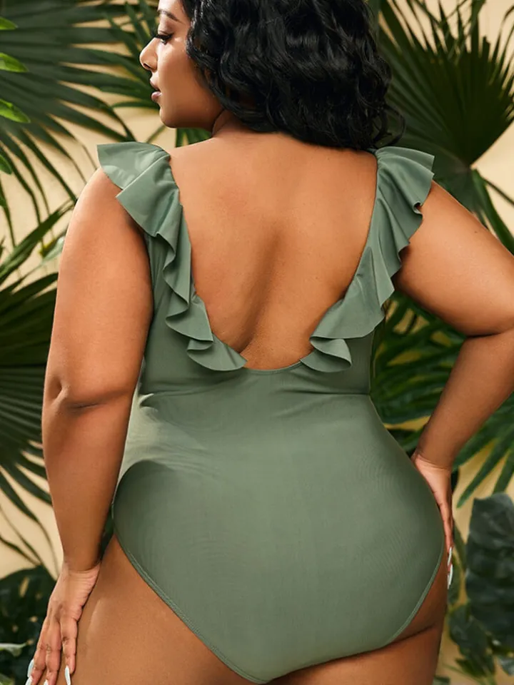 One Piece Sleevelesss Ruffle Bodycon Swimsuit