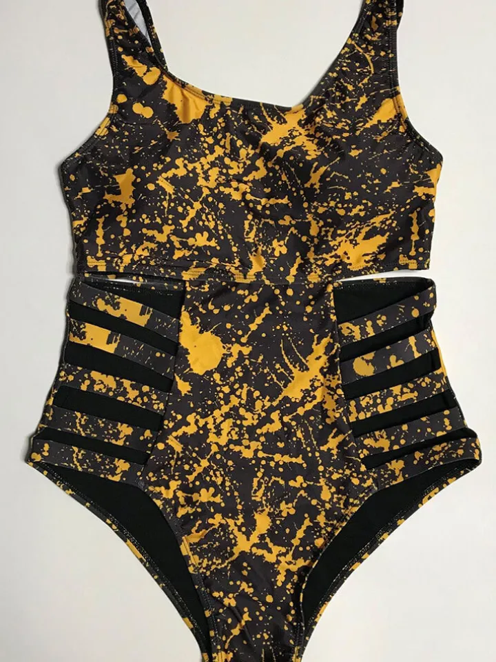 Features: Sleeveless, tie dye print, slim fit, backless, hollow out, crop top, one pieces outfits, beachwear. This swimsuit makes you more fashionable and attractive.