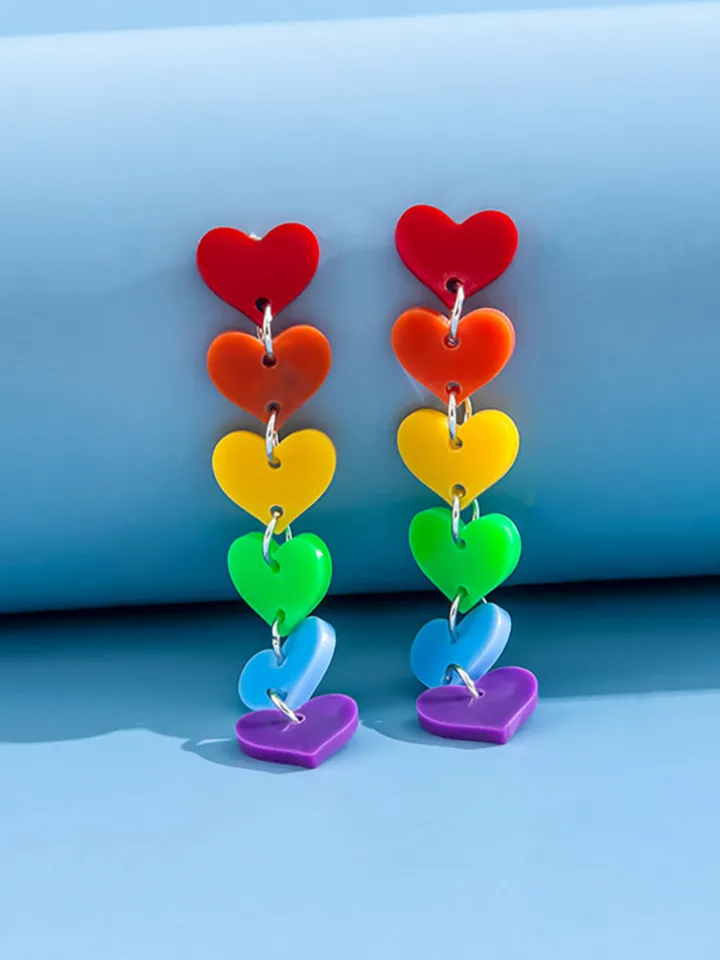 Rainbow Heart Tassel Earrings