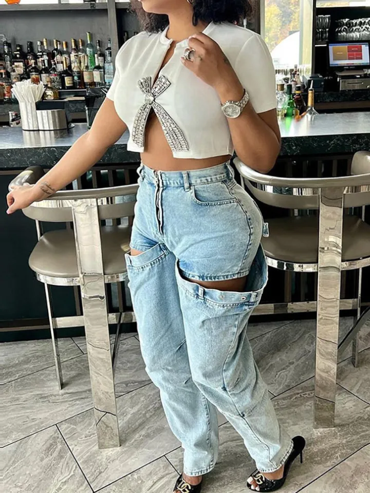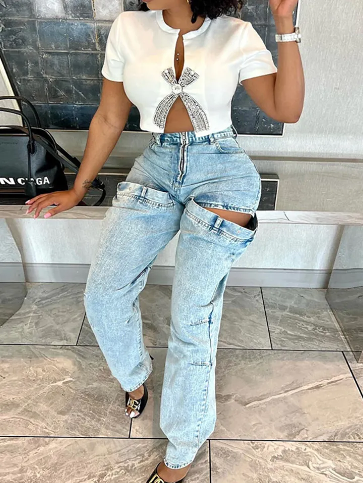 Rhinestone Split Hem Crop Top