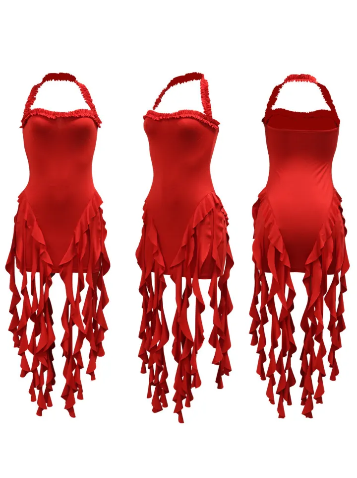 Be the first to review “Ruffle Fringe Halter Mini Dress” Cancel reply