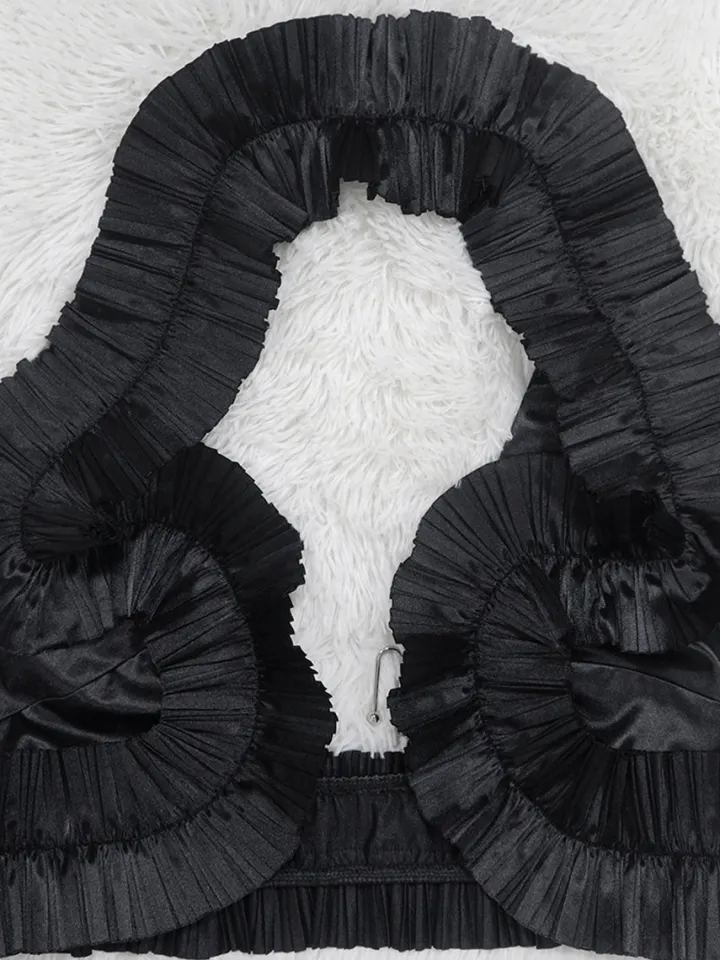 Ruffle Hem Top Ruched Slit Skirt Set