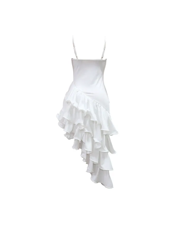 Ruffled Asymmetrical Ruched Cami Dress