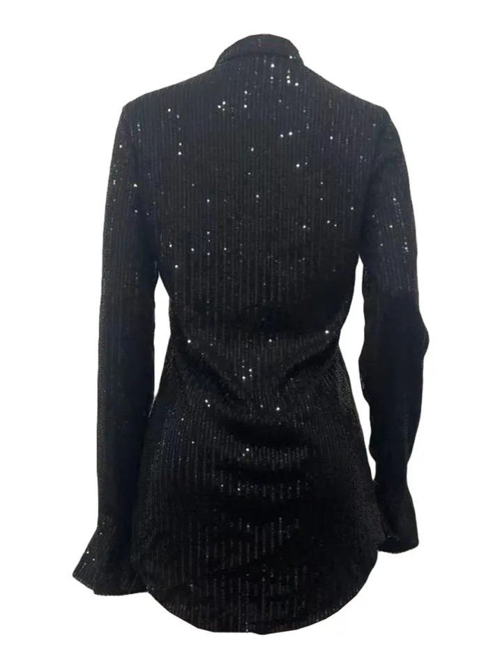 Sequin Loose Flare Sleeve Shirt Mini Dress