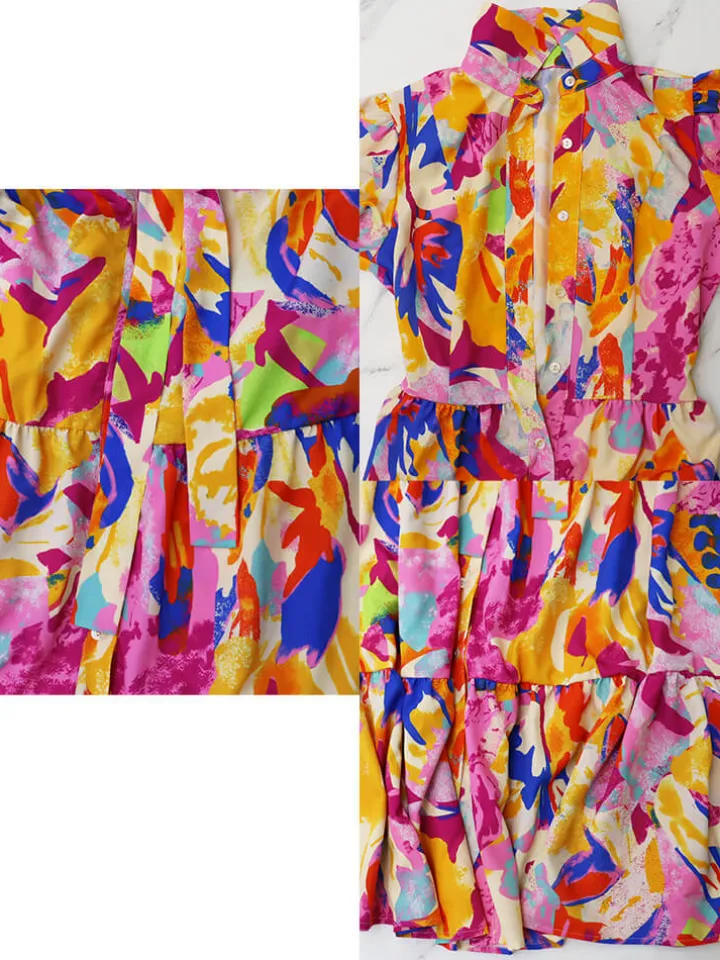 Feature: Short sleeve, lantern sleeve, floral print, tie up, collar, bodycon, button, midi dresses, NO STRECH.