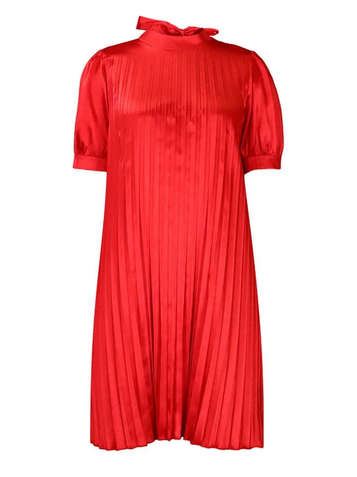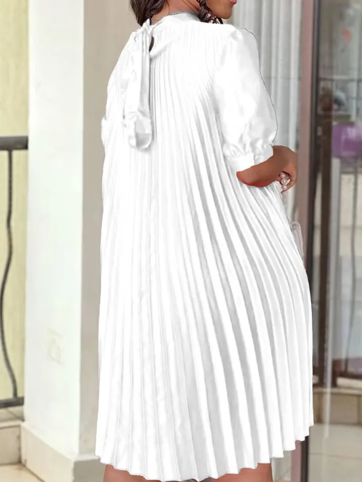 Short Sleeve Mock Neck Pleated Mini Dress