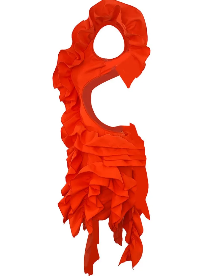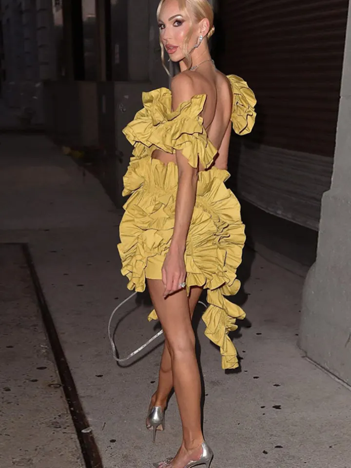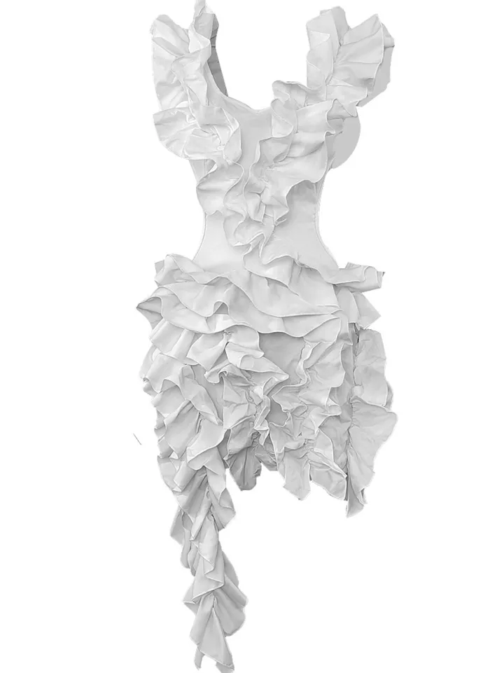 Features: No stretchy, sleeveless, cut-out, solid color, backless, crimping, ruched, asymmetrical hem, mini dress.