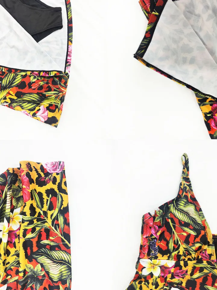 Feature: Sleeveless, leopard print, v-neck, split, floral print, bodycon, one-piece romper, swimsuits.