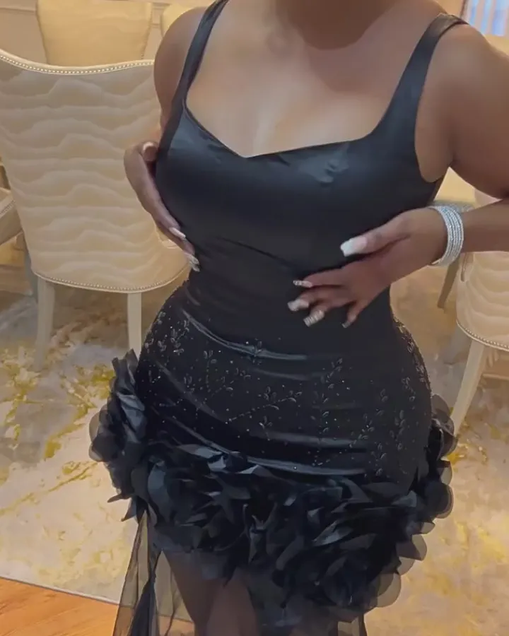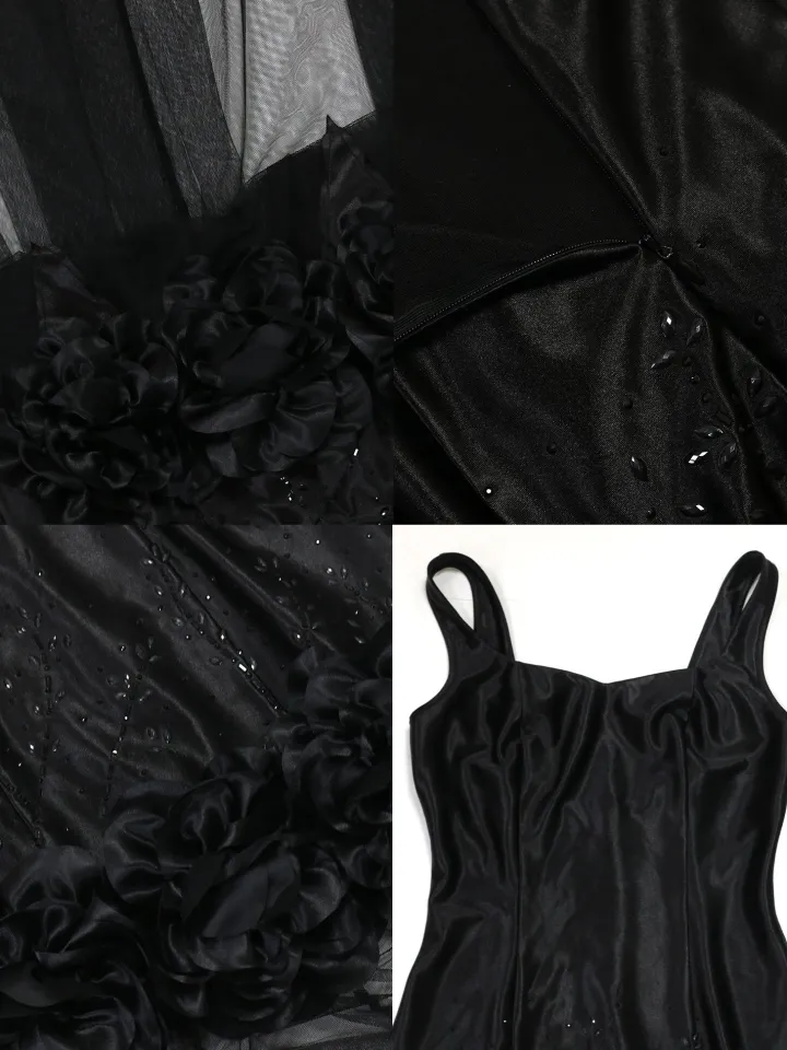 Sleeveless Sequin Flower Mesh Patchwork Maxi Dress