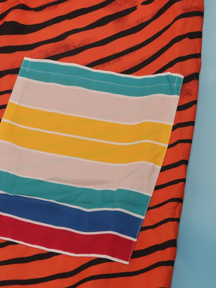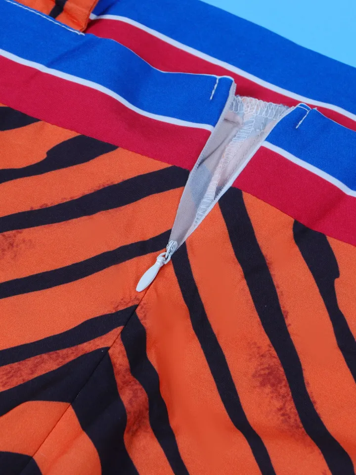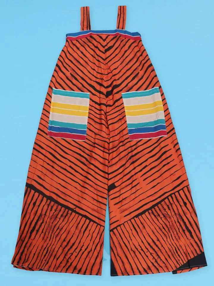 Strap Print Pockets Wide Leg Jumpsuit