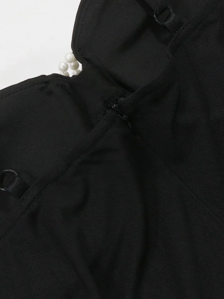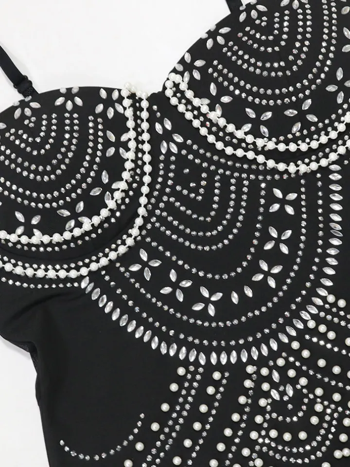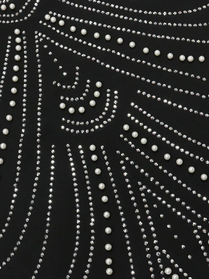 - Rhinestone & pearl embellishments