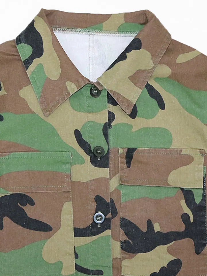 Two-Piece Camouflage Print Long Sleeve Midi Skirt Set