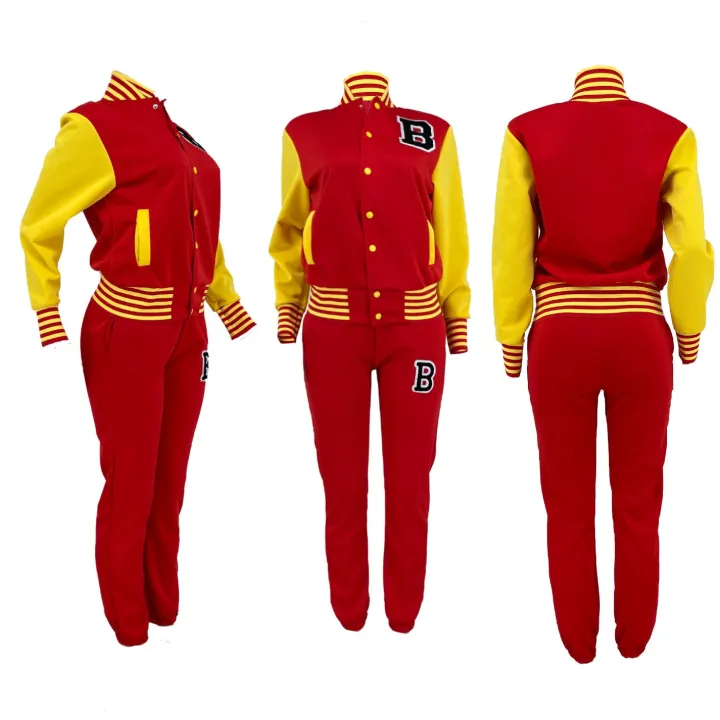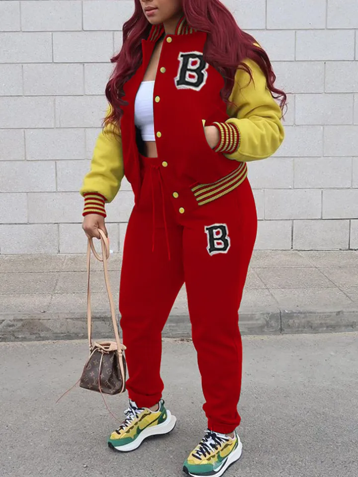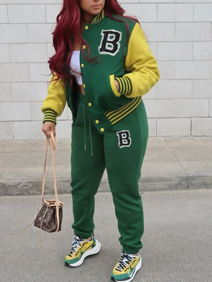 Two-Piece Letter Print Color Block Baseball Set