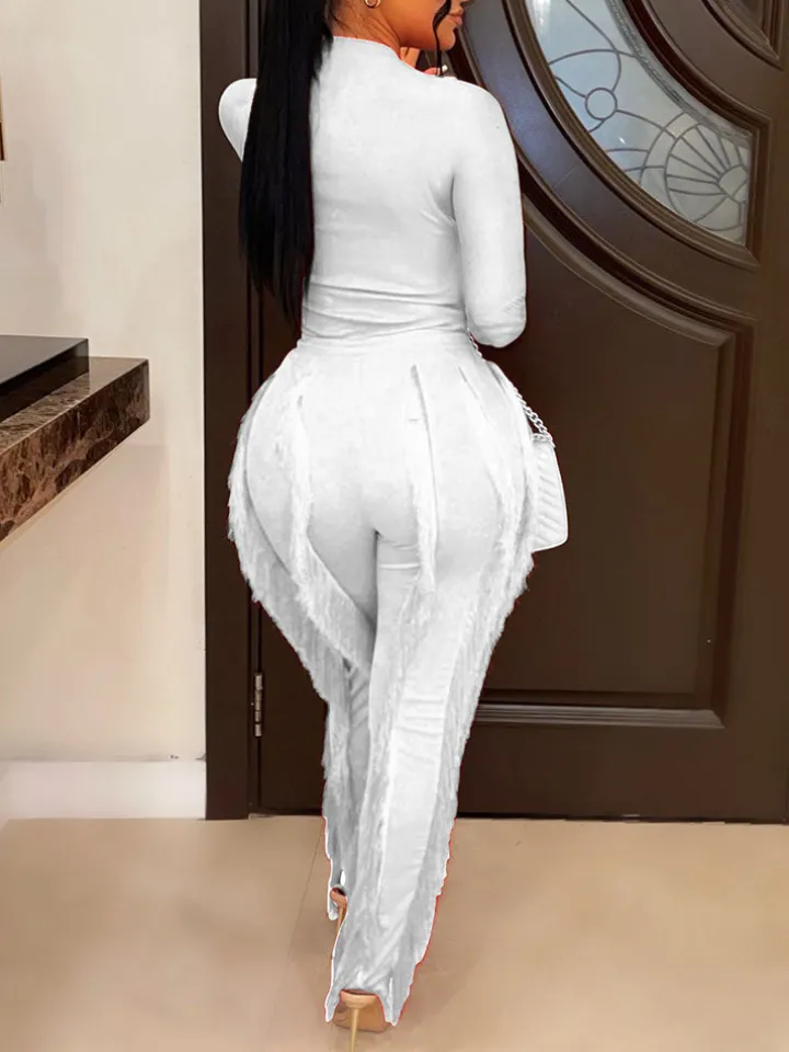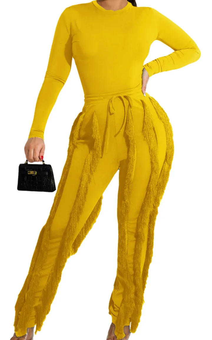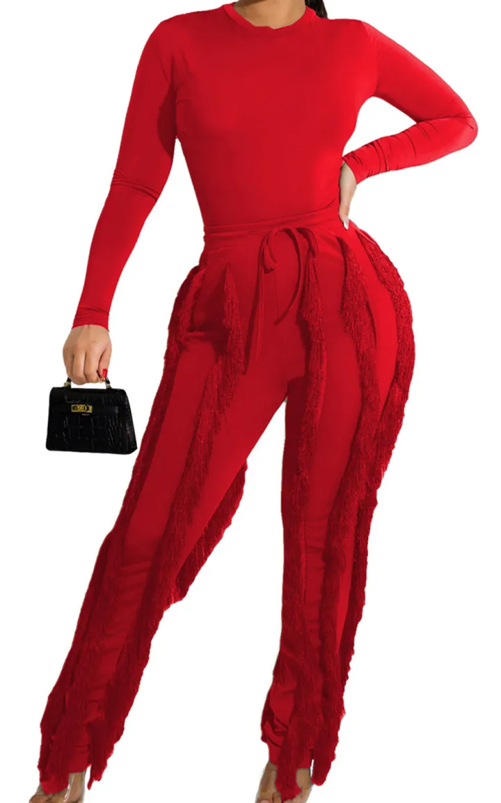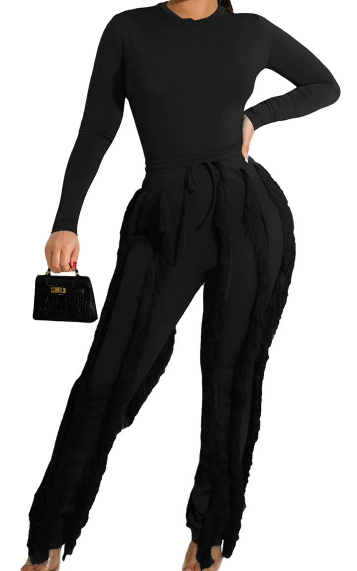 Features: The long-sleeve top and tassel fringe pants set feature a solid color that’s both unique and stylish, offering an on-trend look that can add height and chicness to any outfit.