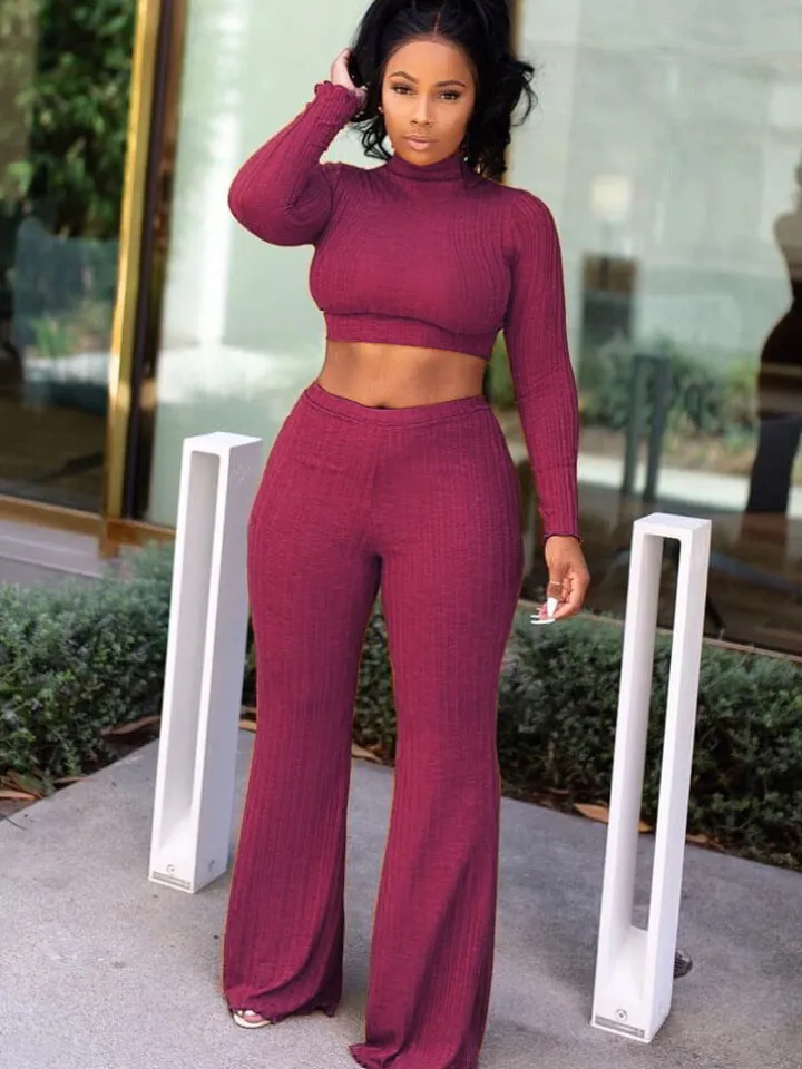 Two Piece Mock Neck Top Long Pants Outfits