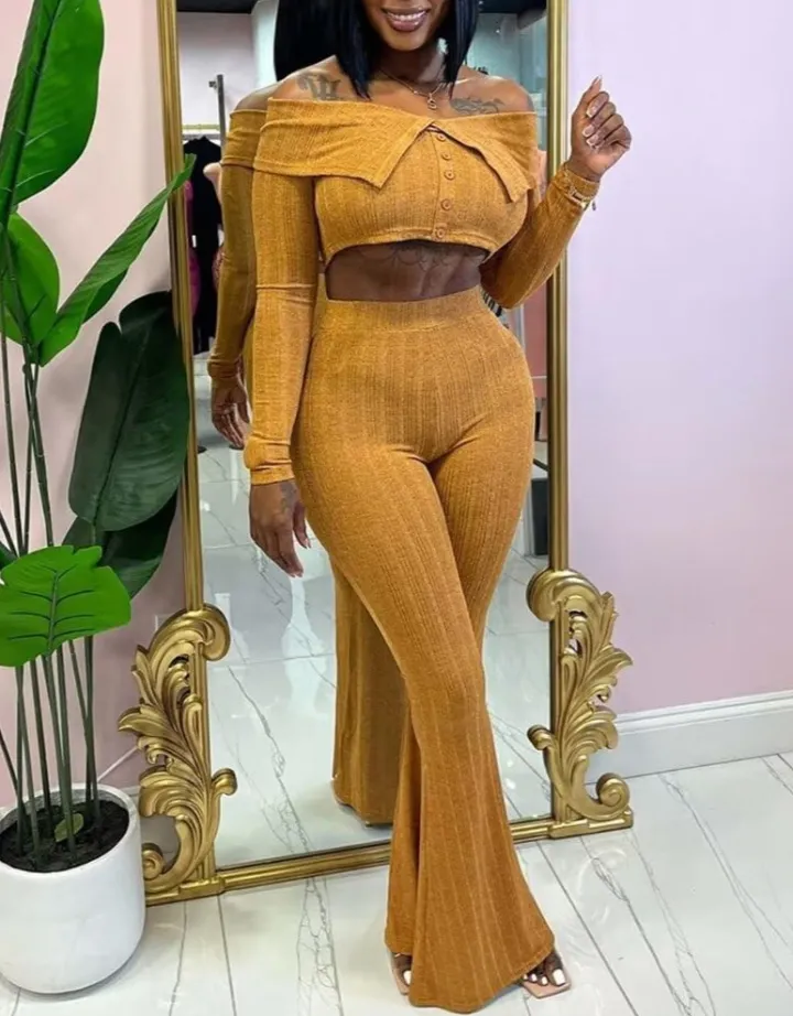 Two Piece Off Shoulder Top Flare Pants
