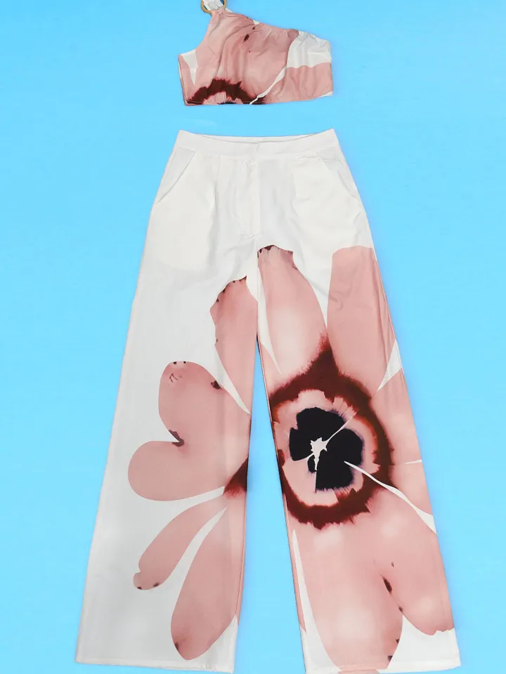 - Top: One-shoulder, slim fit, printed design