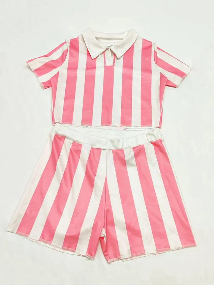 Be the first to review “Two Piece Short Sleeve Striped Crop Top Shorts” Cancel reply
