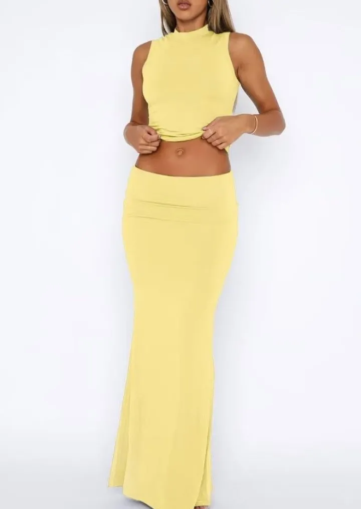 Two Piece Sleeveless Bodycon Top Ruched Skirt