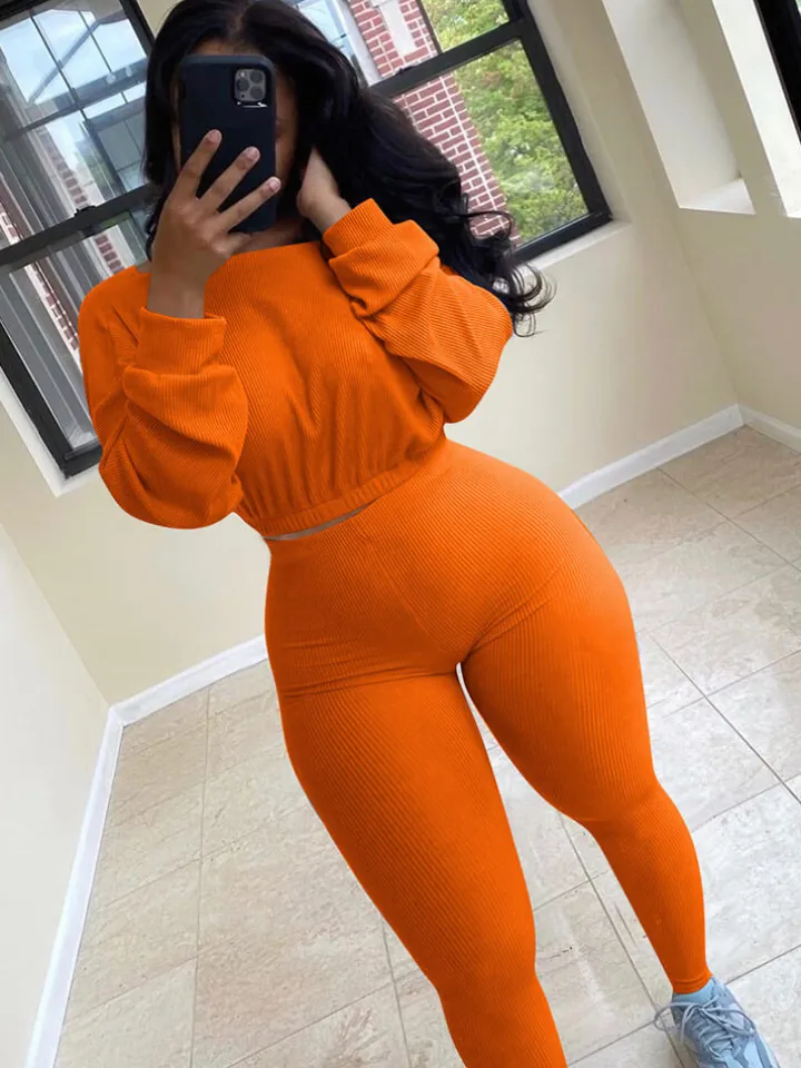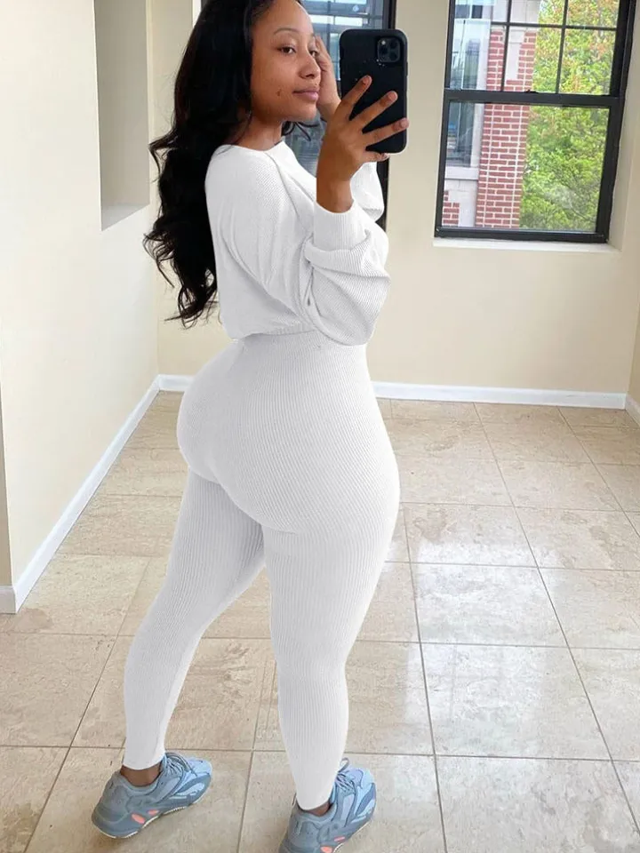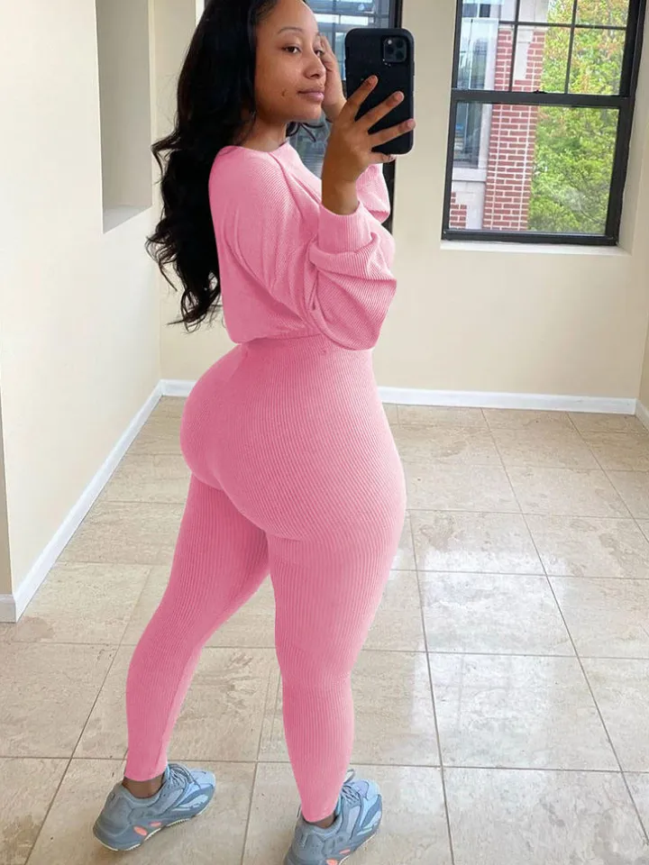 Feature: Solid color, ribbed knit tops, and skinny pants.
