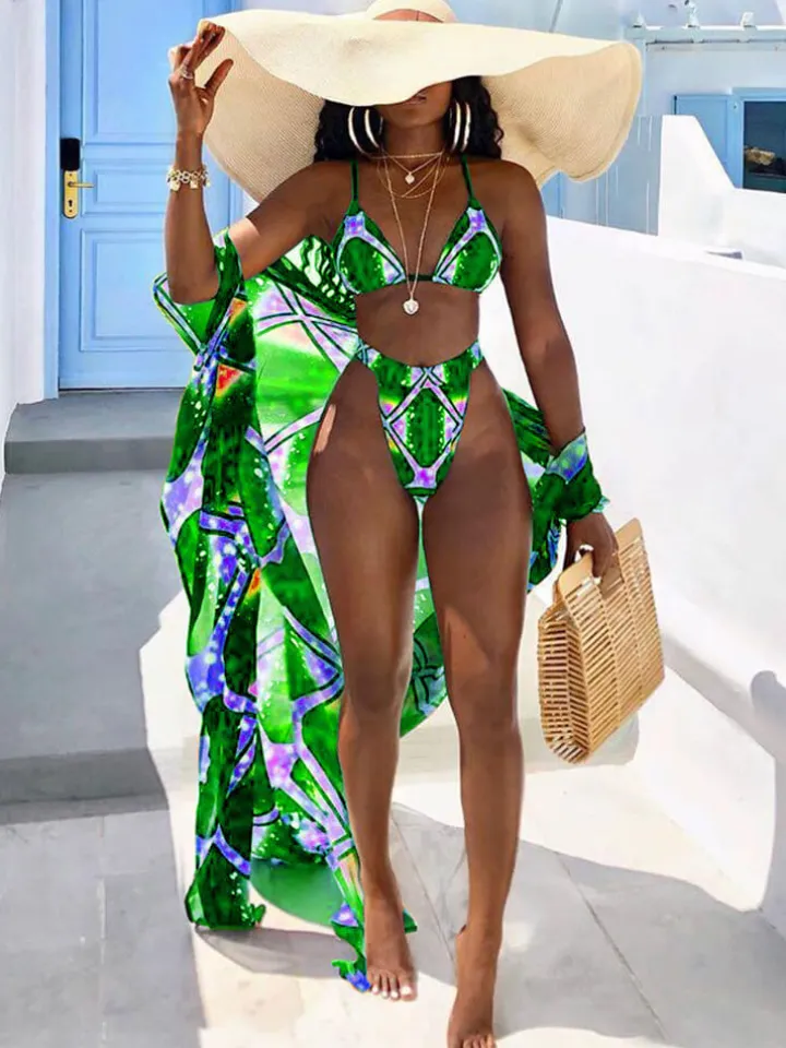 - Features: High waist bikini bottom, high cut show your leg much longer, long cover-up, cloak fresh floral leaf printing, a unique design that makes you charming and attractive on any occasion.