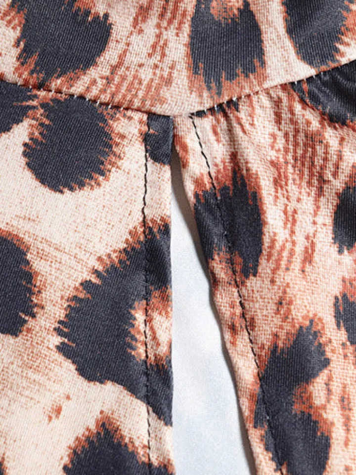 - Design: Halter tie-neck, sleeveless, leopard print