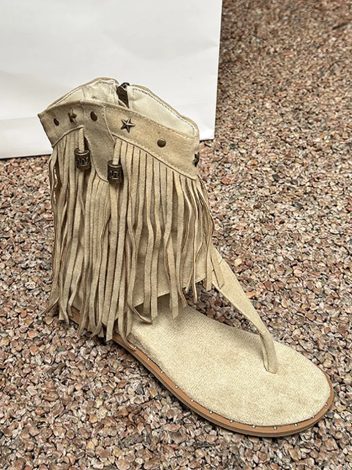 Bohemian Studs Tassel Thong Sandals