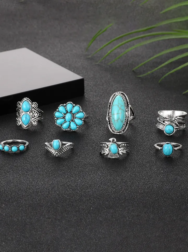 Boho Turquoise 8-Piece Ring Set